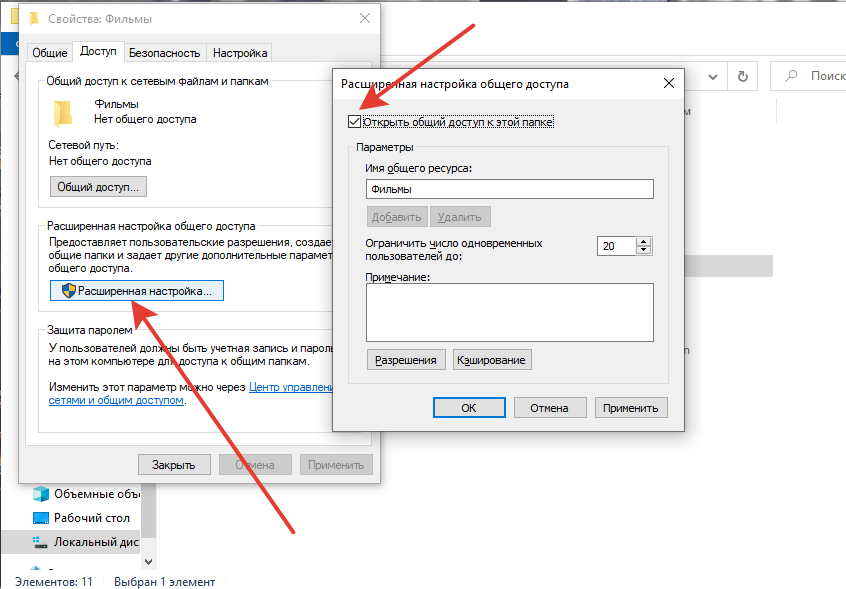 - «Параметры общего доступа».