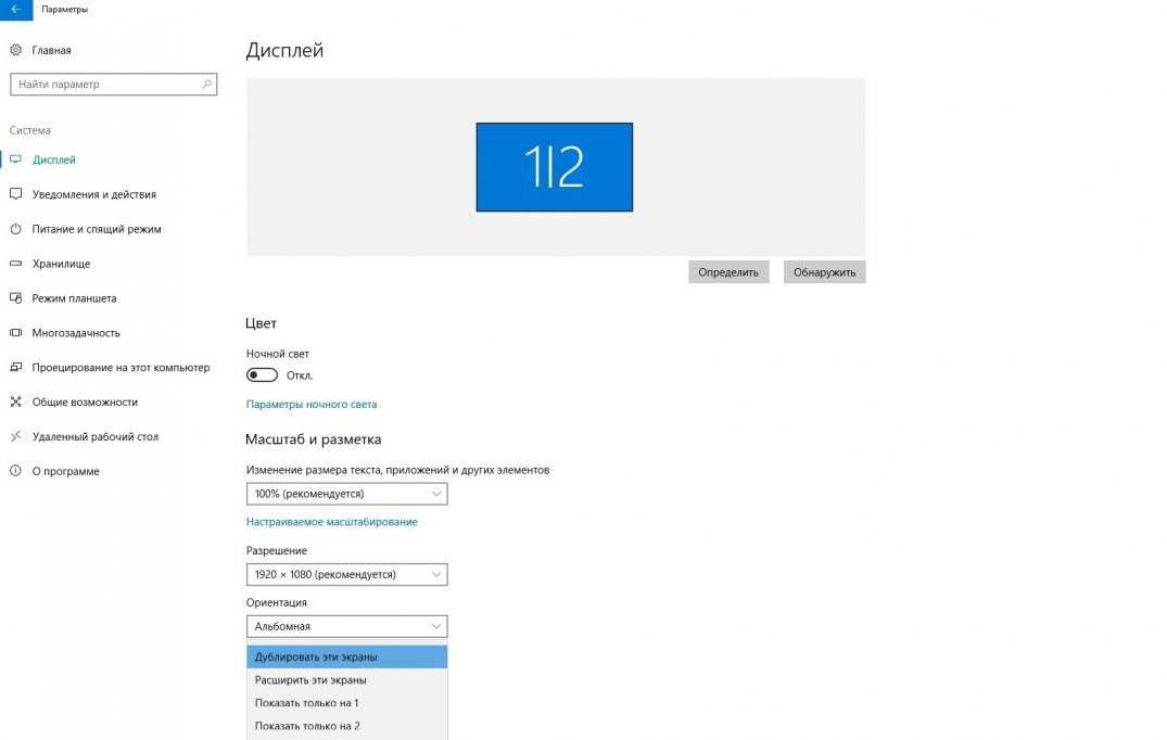- В появившемся окне можно увидеть, какой экран установлен в качестве главного. В «Несколько экранов», если отмечена опция «Отображать рабочий стол только на 2 экранах», замените ее на опцию «Дублировать эти экраны».