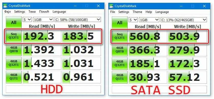 - HDD — Скорость чтения и записи свыше 120 мб/с