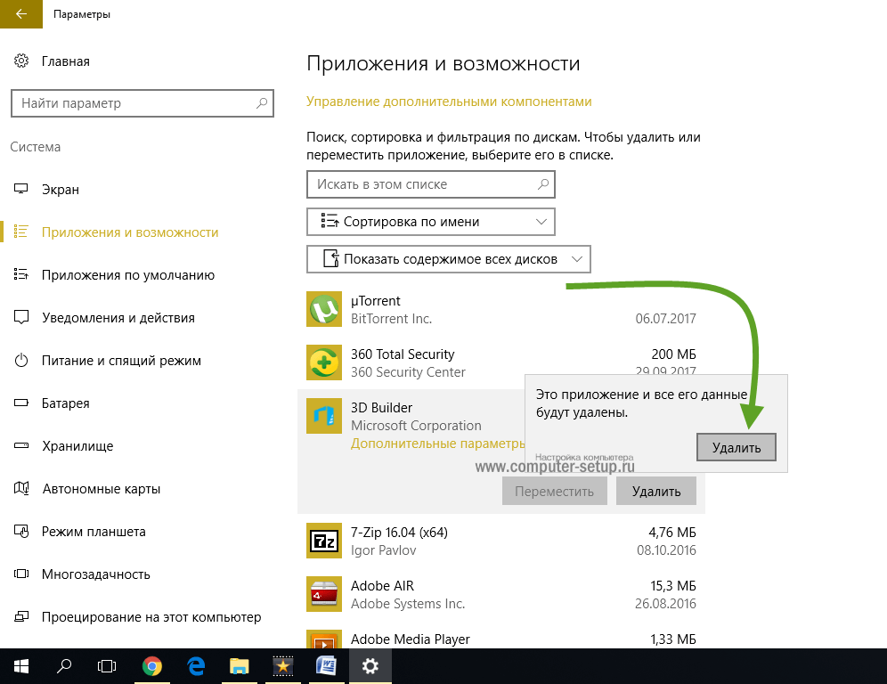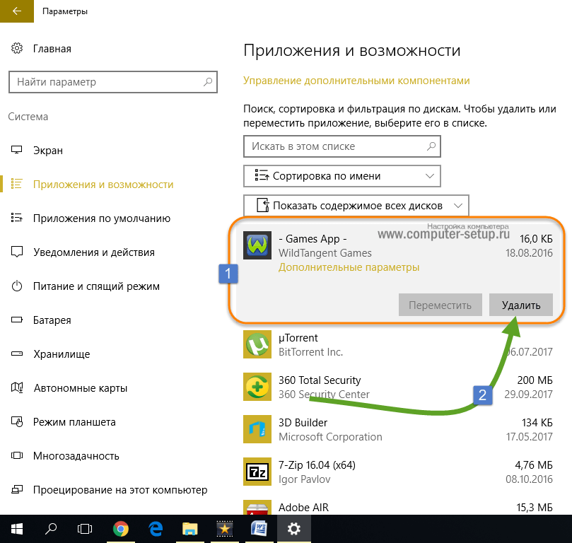 Удаление ненужных программ в windows 10 с помощью меню «параметры»