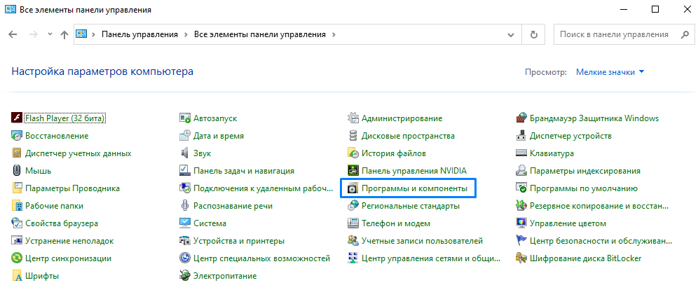 - далее перейдите в раздел «Программы», а далее — «Программы и Компоненты»;