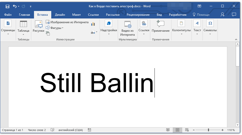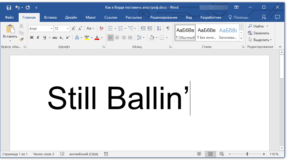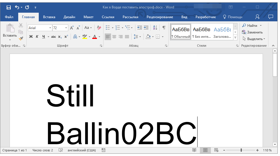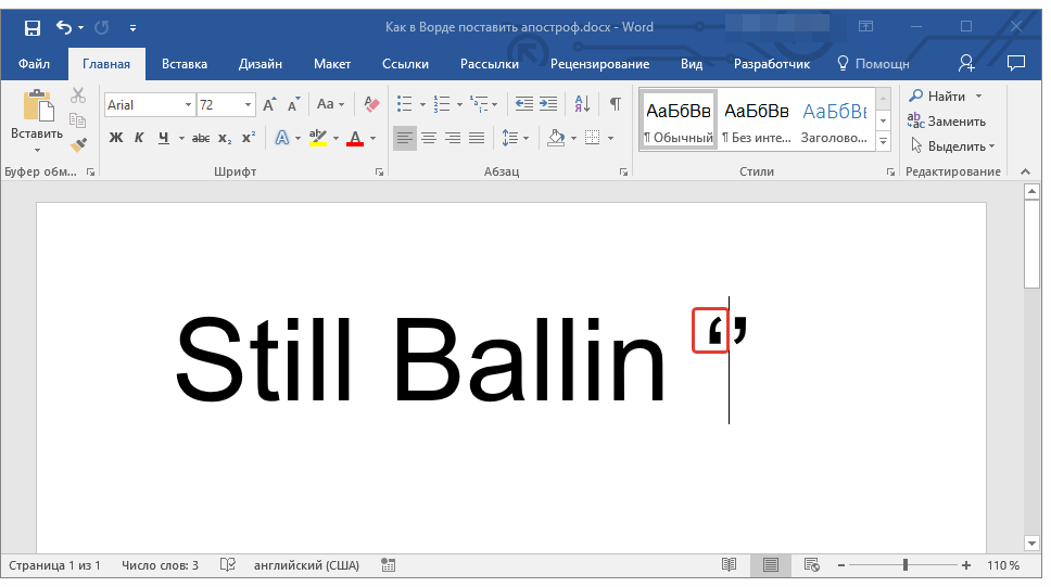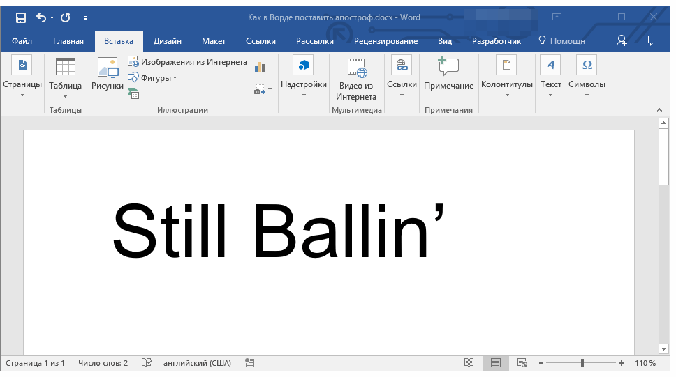 5. Апостроф будет добавлен в выбранное вами место документа.