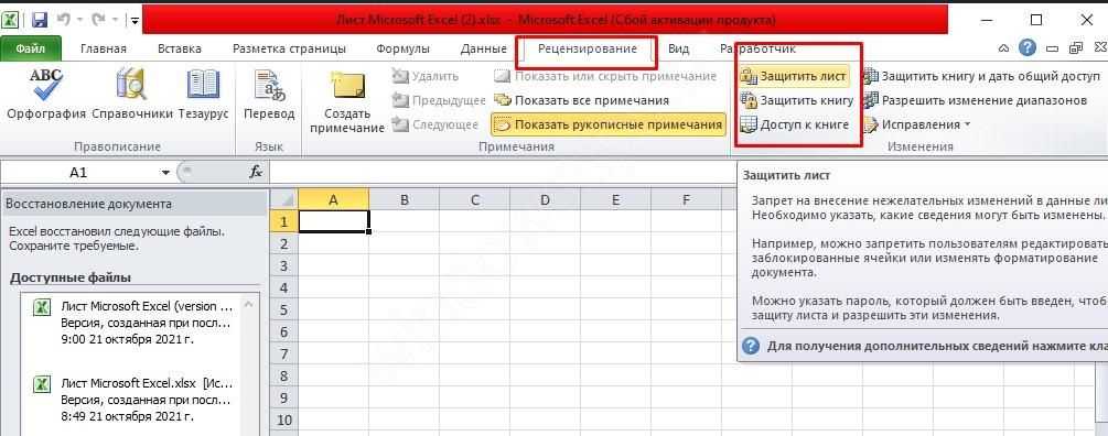Установка пароля и его снятие во вкладке «Рецензирование»