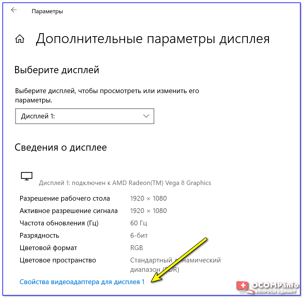 После необходимо открыть свойства видеоадаптера (пример на скрине ниже ).