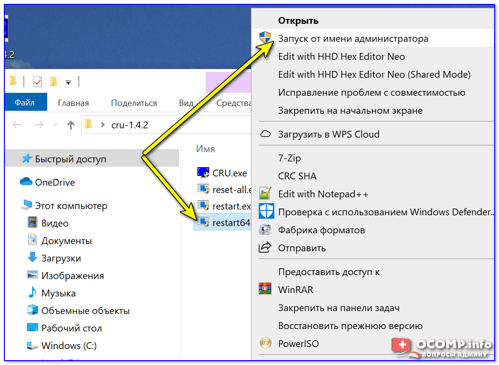 Теперь необходимо запустить от имени администратора файл «restart64» . Благодаря этому новый режим работы монитора добавится в список доступных.