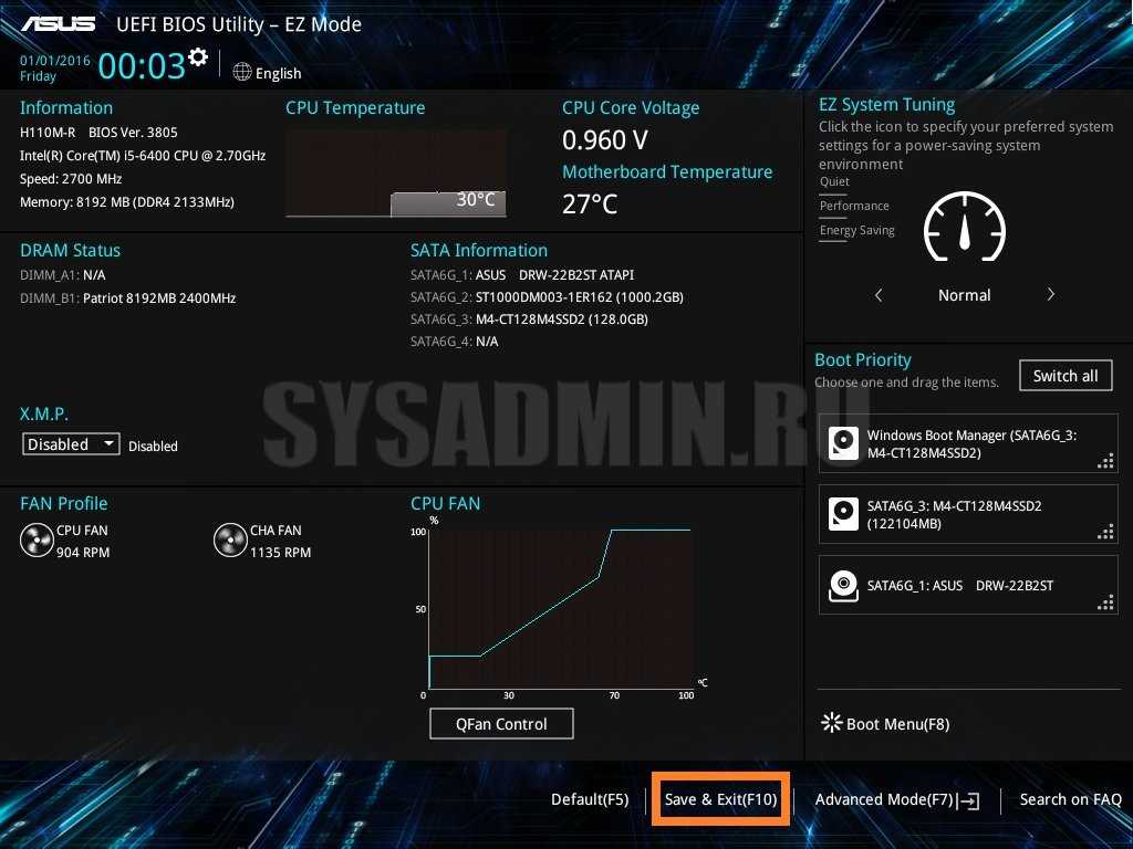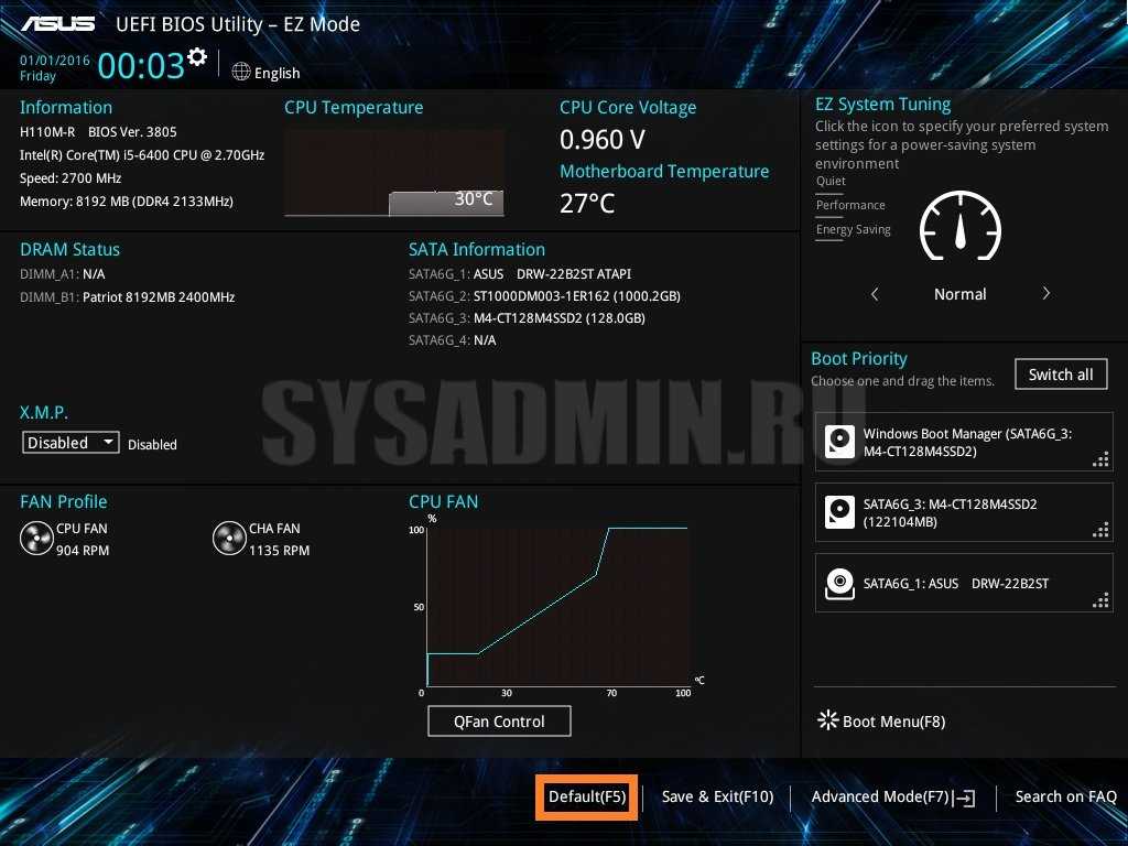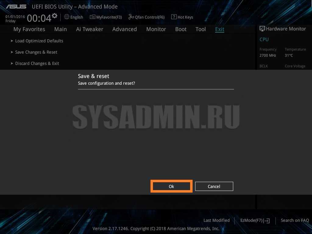 Сброс настроек BIOS в ASUS UEFI BIOS