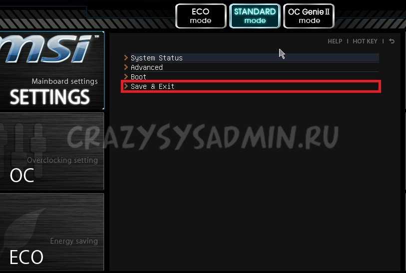 Теперь нужно выбрать пункт «Exit & Save Changes».