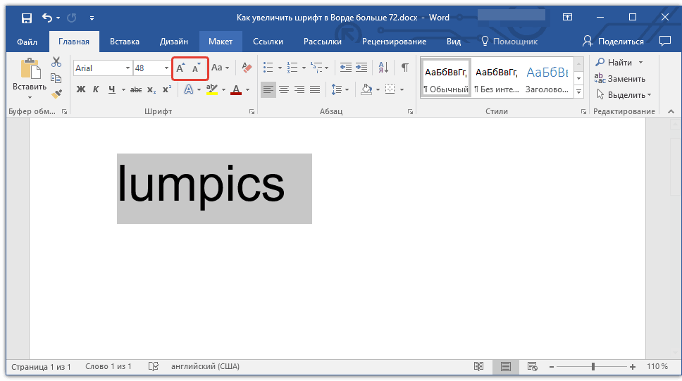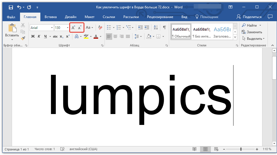 Как в ворде увеличить шрифт