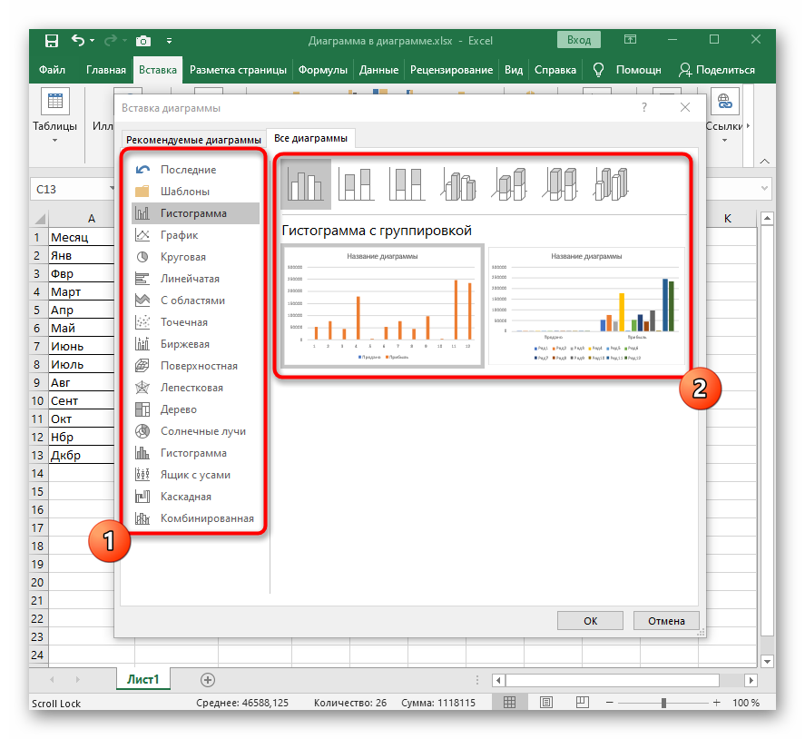4. В появившемся диалоговом окне выберите желаемую диаграмму и нажмите «ОК».