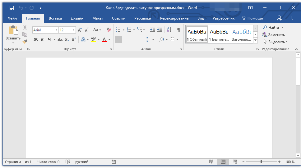 1. Откройте документ, но пока не торопитесь добавлять в него рисунок, прозрачность которого требуется изменить.