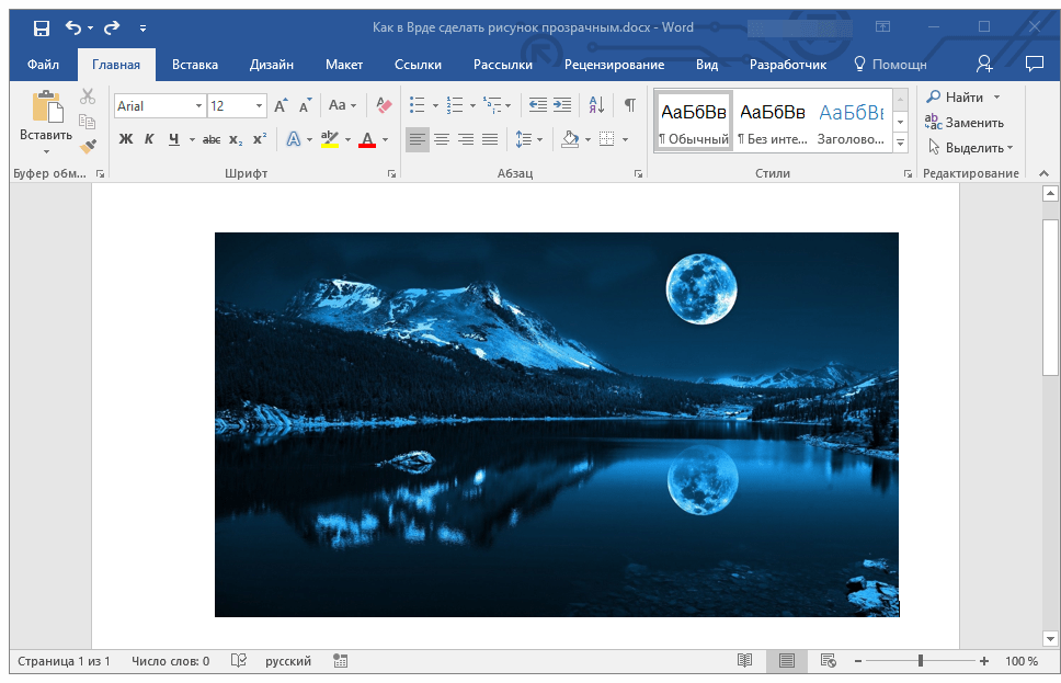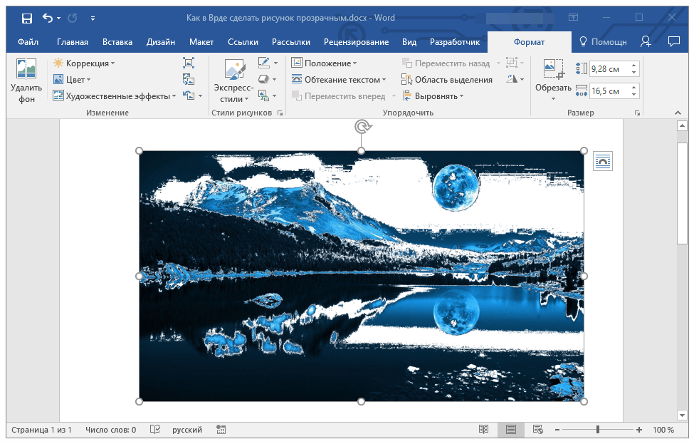 На этом все, теперь вы знаете, как в Word изменить прозрачность рисунка, а также знаете о том, как сделать прозрачными отдельные его фрагменты. Не забывайте о том, что данная программа — это текстовый, а не графический редактор, поэтому не следует выдвигать к нему слишком высоких требований.