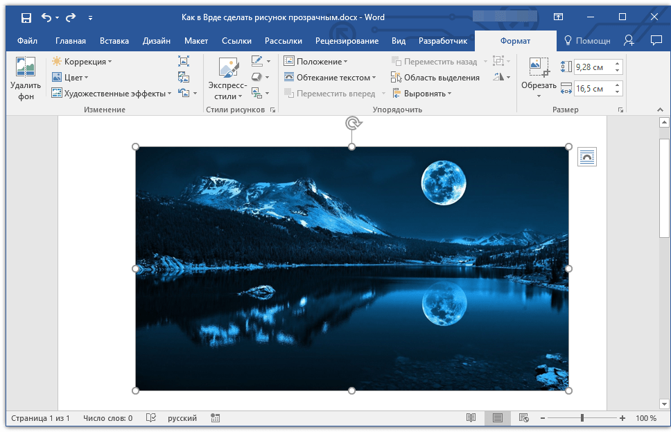 Microsoft Word – это текстовый редактор и для работы с изображениями здесь не так уж много функций. Добавленную в документ картинку можно обрезать, повернуть, изменить резкость и яркость. А вот что касается прозрачности, то здесь нужно немного постараться, поскольку сразу ее изменить не получится.