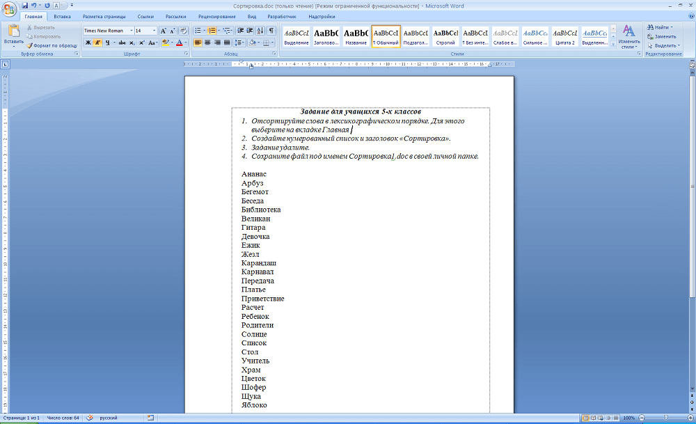 Урок: Как в Word упорядочить список в алфавитном порядке