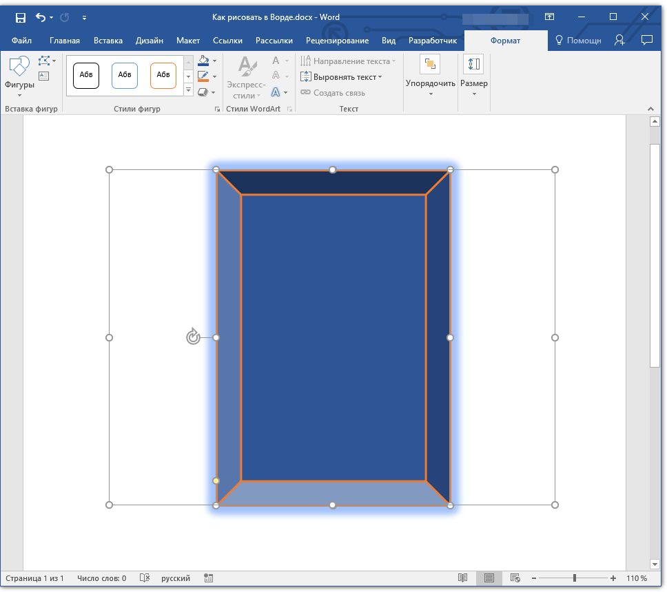 Поворот фигуры выполняется точно так же, как и поворот рисунка — на шаблонное, строго заданное или произвольное значение. То есть, можно выбрать стандартный угол поворота, указать свой или просто повернуть фигуру, потянув за круговую стрелку, расположенную непосредственно над ней.