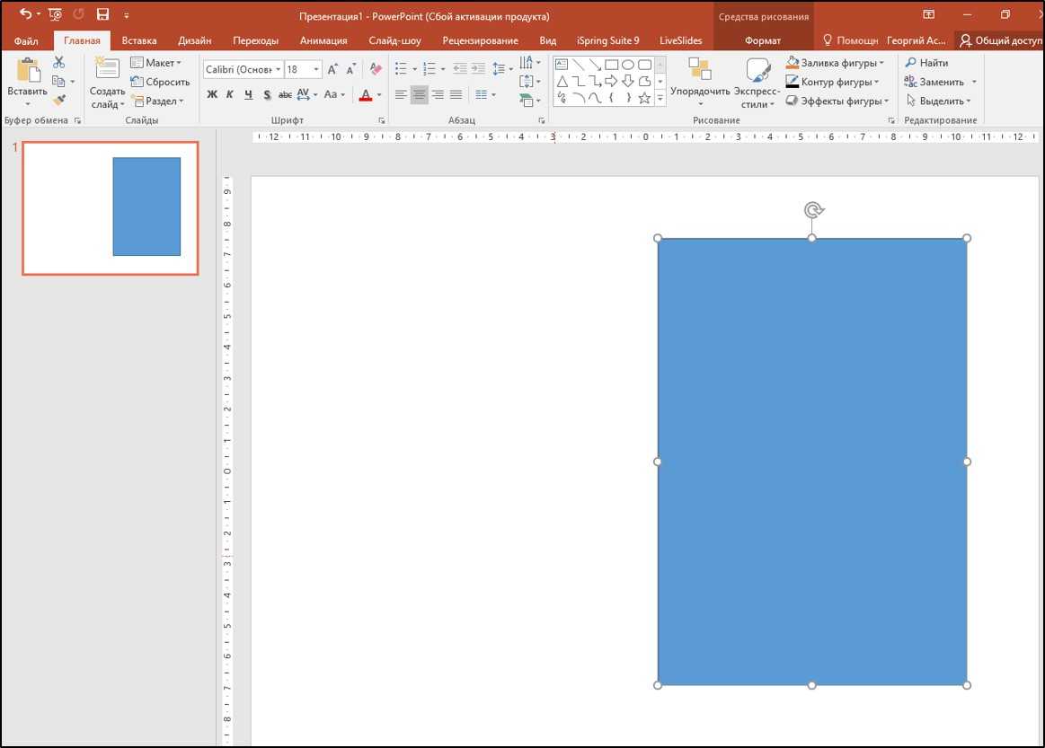 1.Начнём со вставки на слайд большого прямоугольника, который станет основой страницы нашей будущей книги.