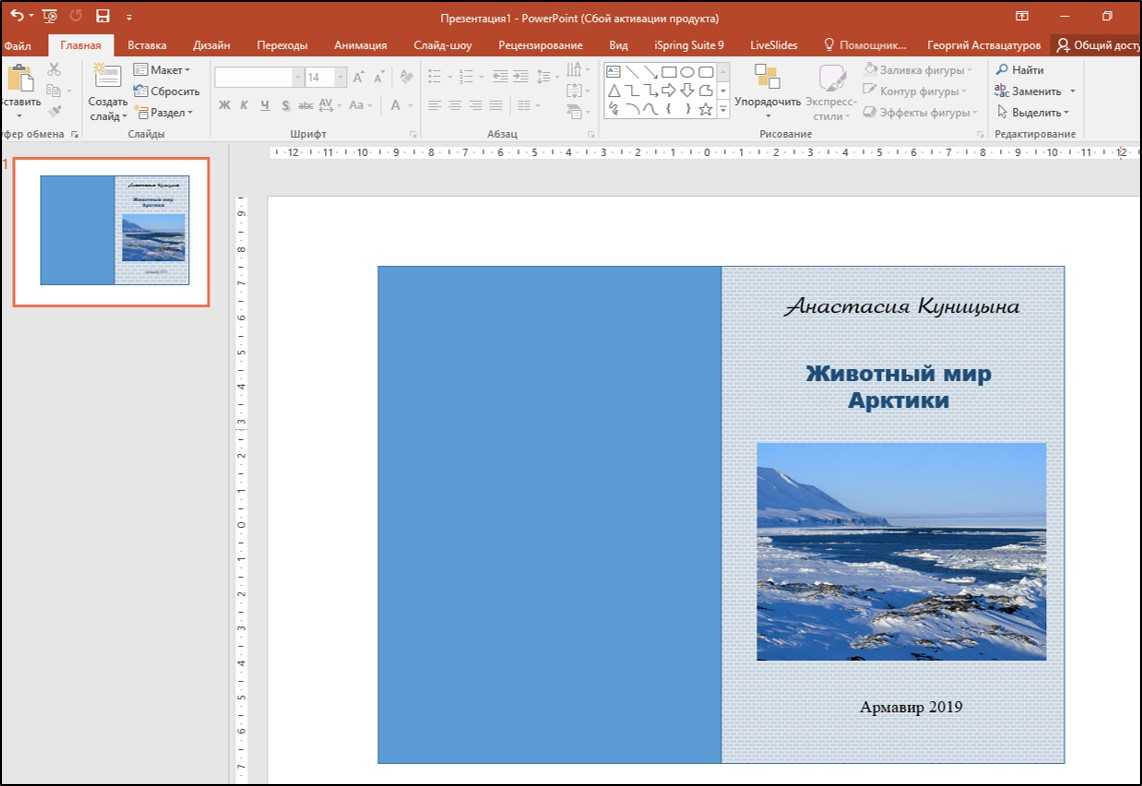 Слайд изменил положение, и пользователь может использовать программу для создания презентации в формате книги.