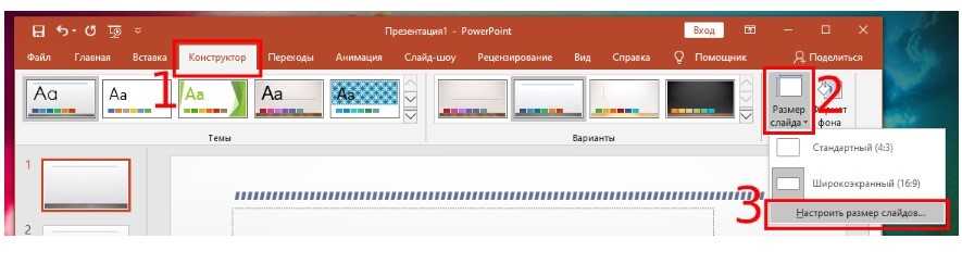 В изданиях программы PowerPoint 2017,2018,2019,2020 смена ориентации слайда настраивается в два хода.