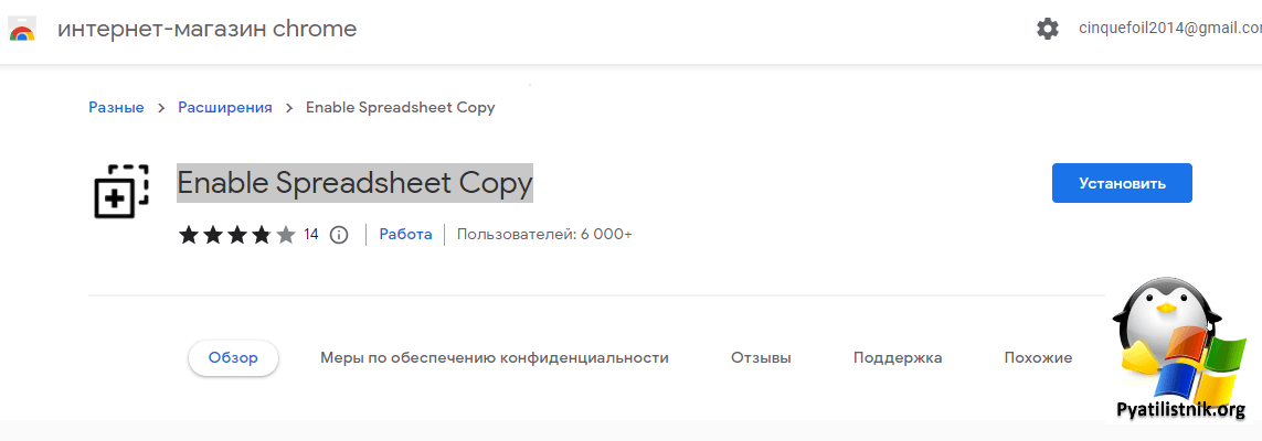 Найдите в магазине Chrome расширение Enable Spreadsheet Copy и просто нажмите кнопку «Установить».