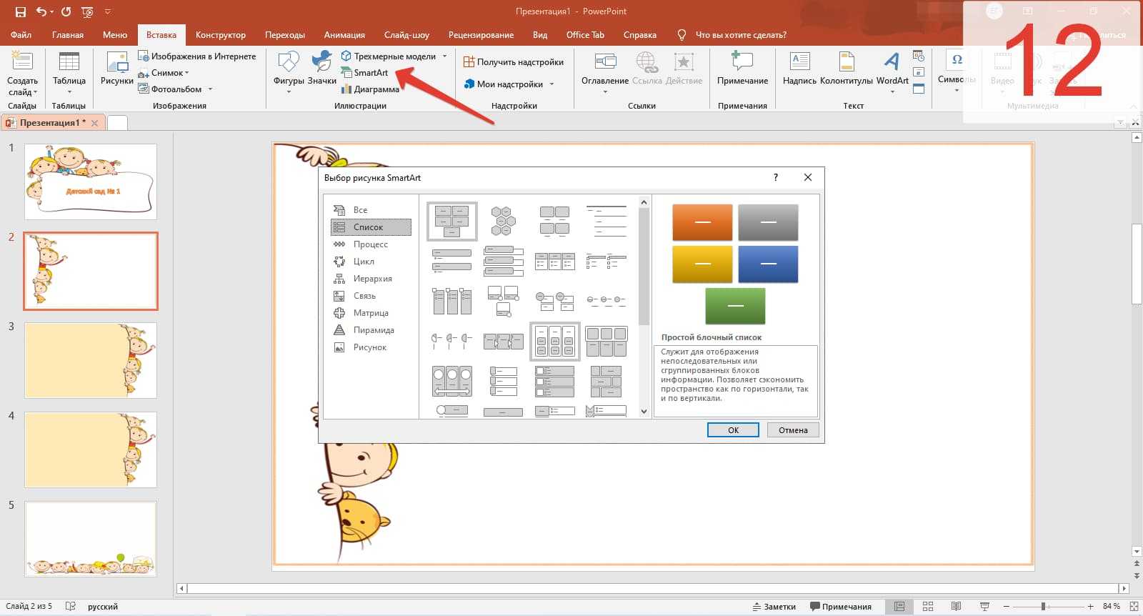 Естественно, существует множество объектов, которые можно добавить в проект и сделать его более привлекательным и удобным для восприятия. В рамках данной инструкции о том, как сделать презентацию в Повер Поинт, будет описан момент с добавлением специальных схем. Они представляют собой готовые шаблоны, которые нужно лишь заполнить. Инструкция выглядит следующим образом: