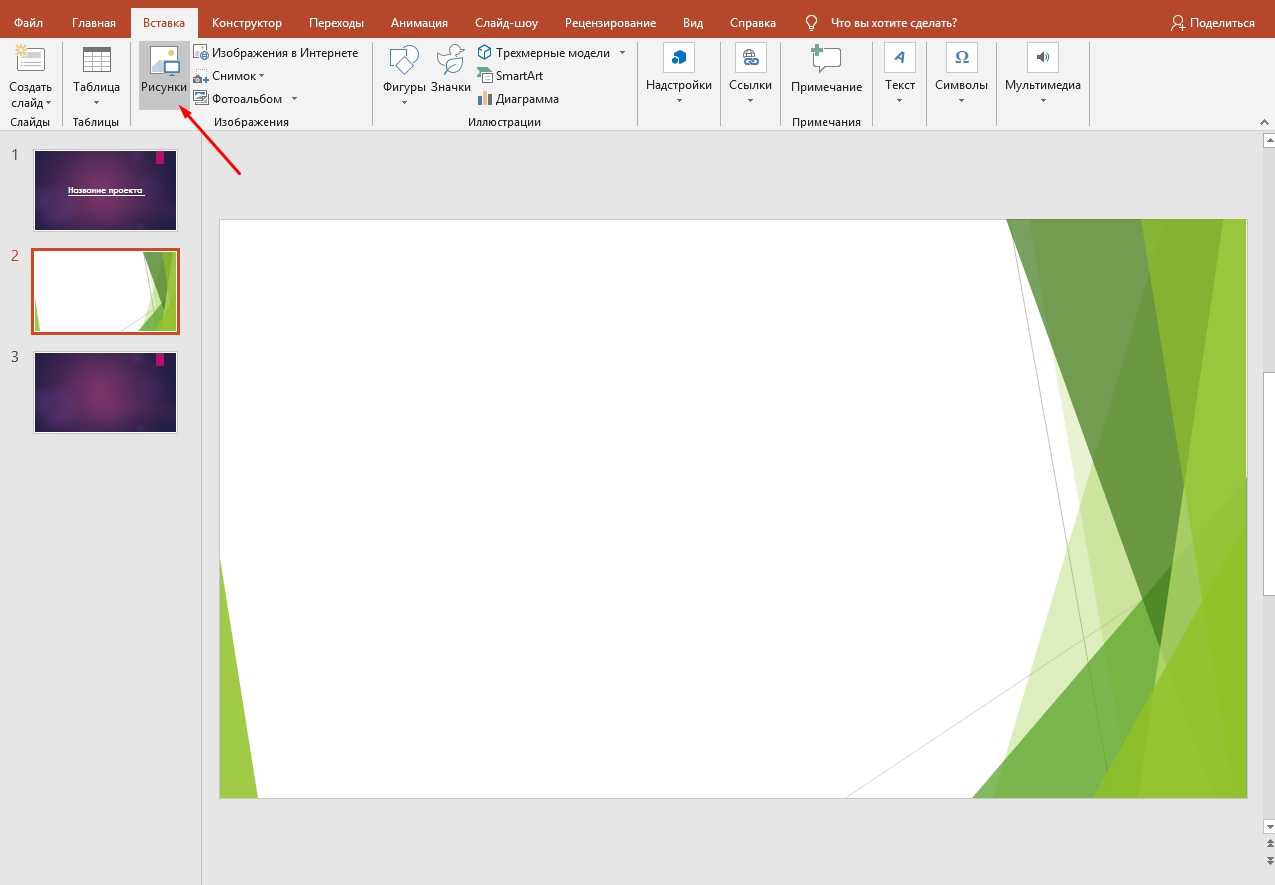 Рис. 3 – вставка рисунка в новых версиях PowerPoint