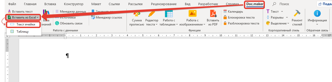 - Перейти ко вкладке меню Doc.maker (она будет доступна после установки программы).