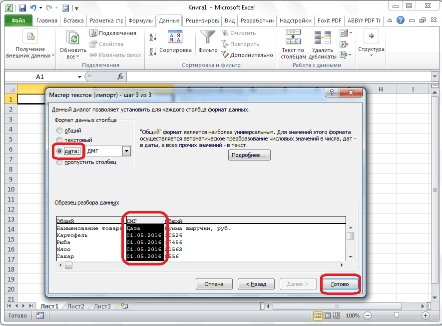 Заполнив ячейки числами, вы должны указать тип данных с которым хотите работать.