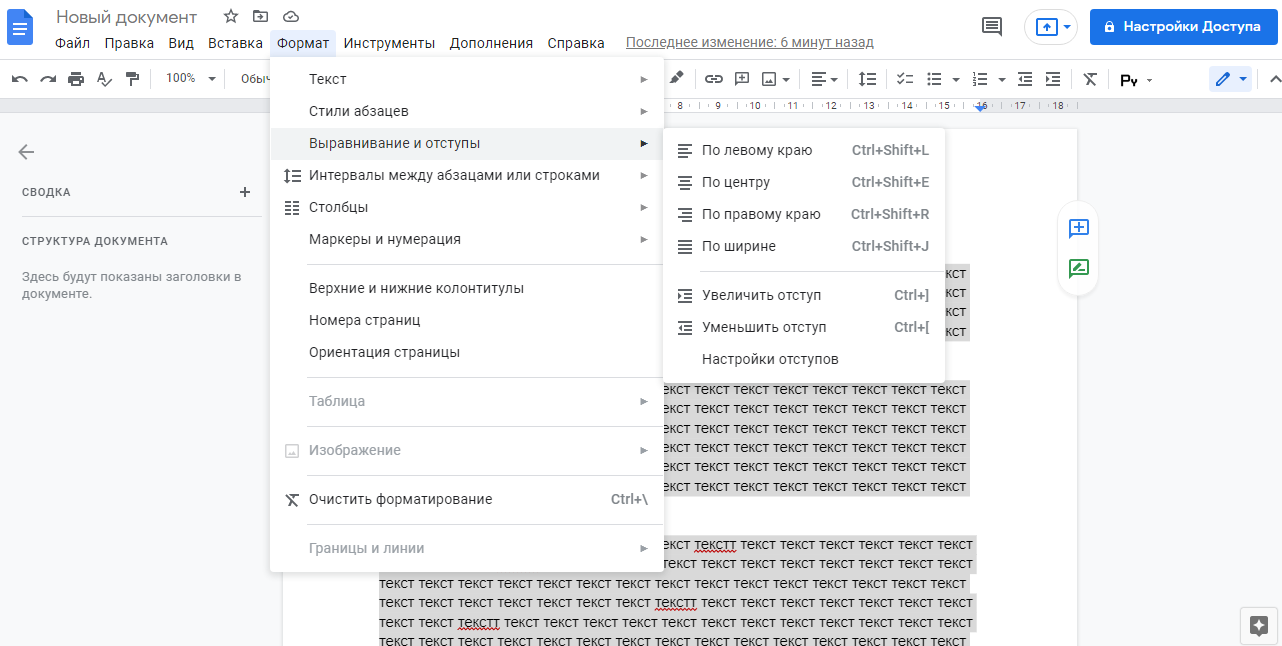 - После этого в верхней панели управления найдите раздел «Формат», нажмите на него;