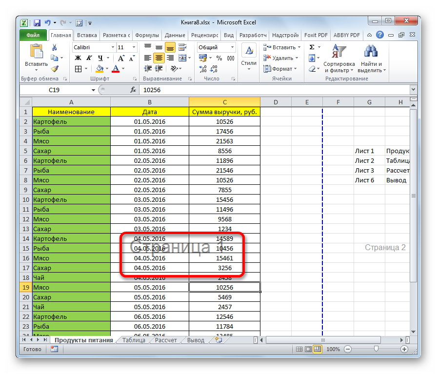 Есть еще «Страничный режим», который предназначается исключительно для изучения информации в виде «целевой» заполненности. То есть в этом режиме в таблице исчезают лишние детали и пустые ячейки, остается только та область, которая целиком заполнена.