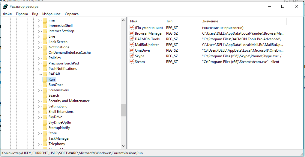 В папке Run хранятся записи о программах в автозагрузке