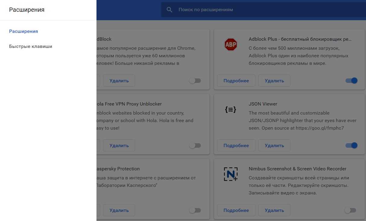 - В открывшемся окне удалите сомнительные расширения.