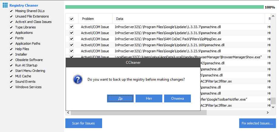 Очистка реестра: