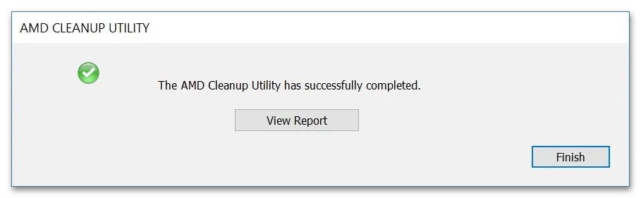 AMD Cleanup Utility — официальная утилита от компании AMD, которая служит средством для удаления фирменных драйверов, включая программное обеспечение видеокарты. Не имеет полноценного графического интерфейса, только вспомогательные диалоговые окна. Рекомендуется использовать, войдя в систему в безопасном режиме, что и будет предложено сделать во время первого запуска.