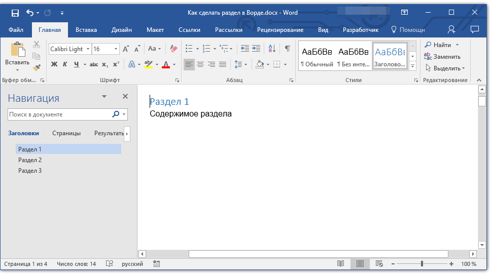 Примечание: Несмотря на то, что создавать разделы в Microsoft Word очень просто, ознакомиться с теорией по части данной функции лишним уж точно не будет. Именно с этого мы и начнем.