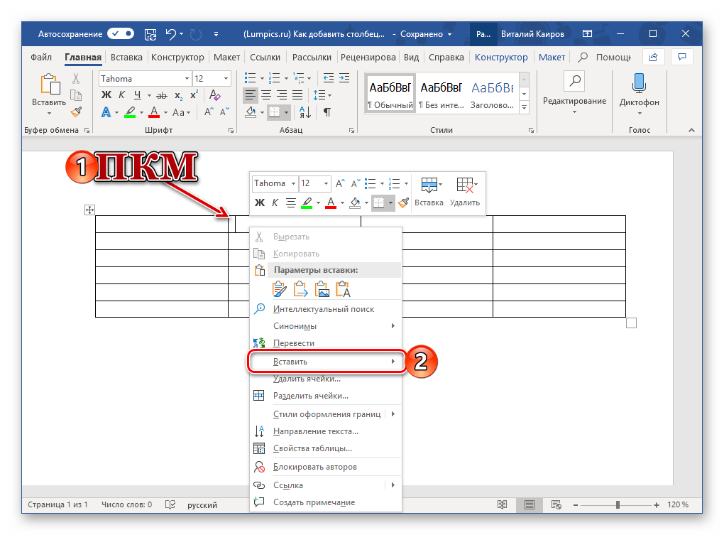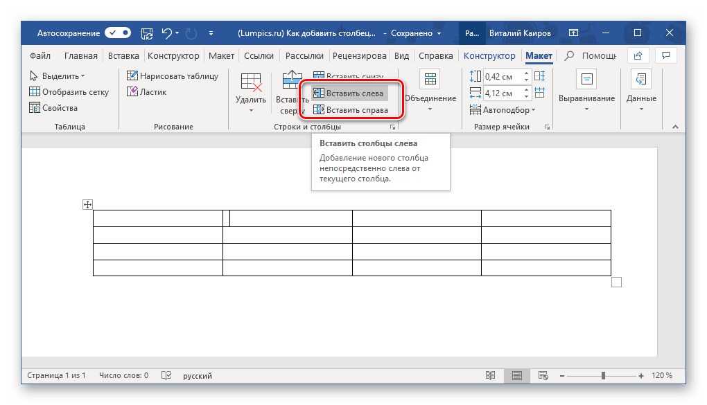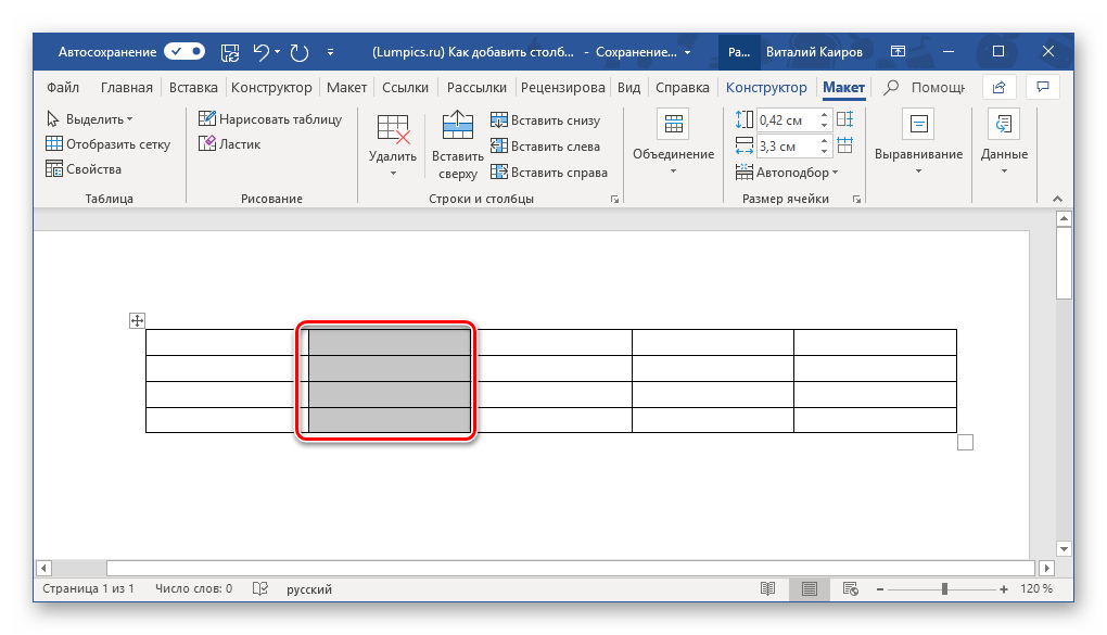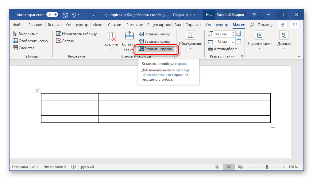 Если потребуется, аналогичным образом добавьте в таблицу желаемое количество столбцов, после чего можно смело приступать к их заполнению.