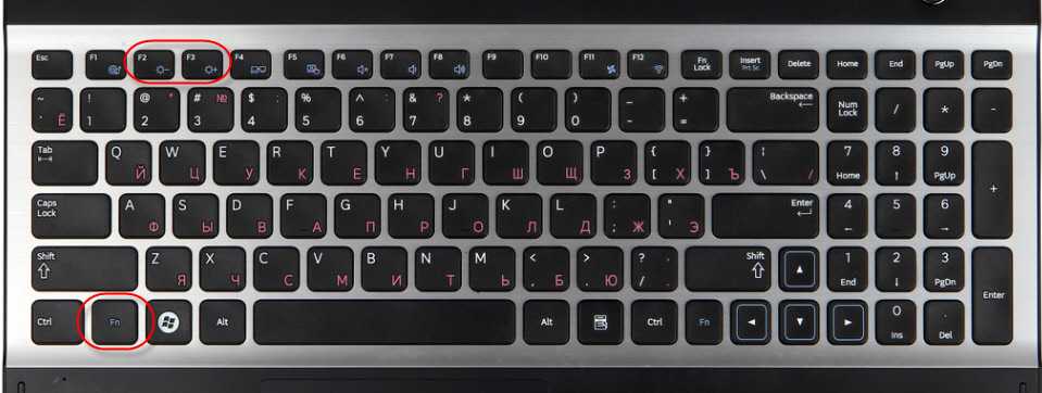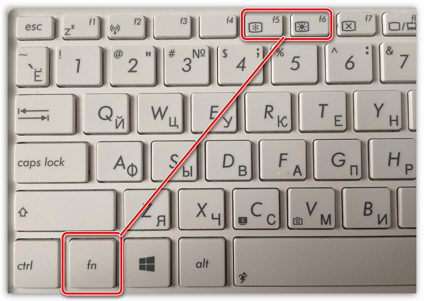 Изменение яркости экрана при помощи клавиатуры