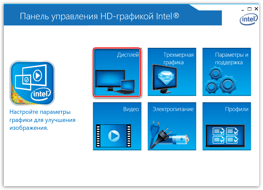 Какой бы Вы вариант не выбрали, откроется вот такое окно. У меня видеокарта от компании Intel, поэтому оно выглядит следующим образом. Если у Вас другой производитель, то вид окошка будет отличаться.
