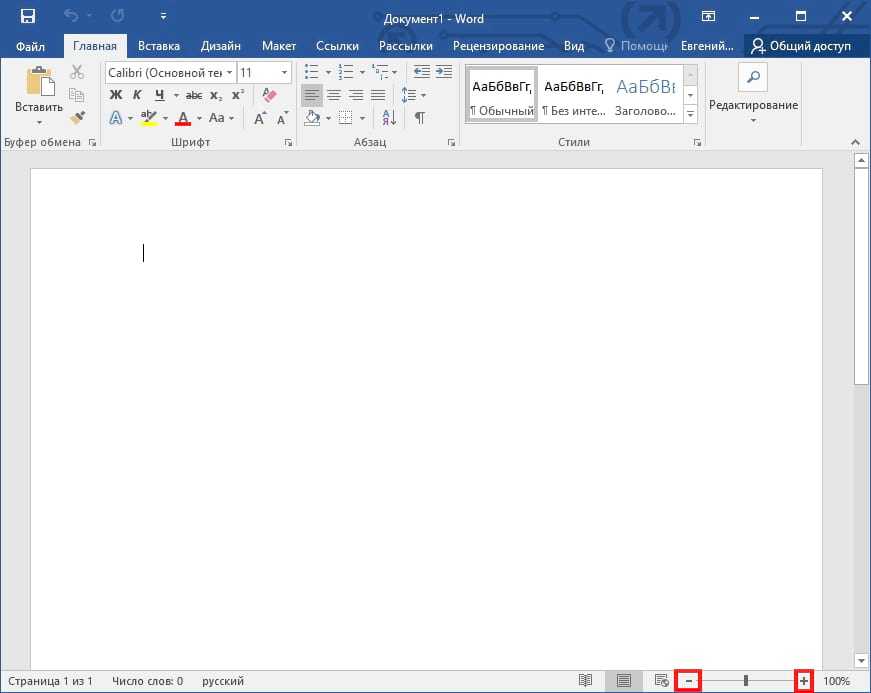 Также можно щелкнуть знак минус (-) или плюс (+), чтобы уменьшить или увеличить масштаб с шагом 10 процентов.