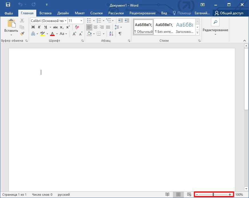 Далее, обратите внимание на ползунок, который расположен в правой нижней части документа (Скрин 1)
