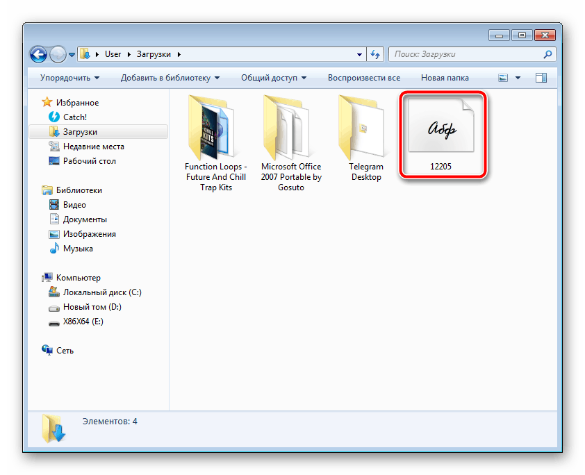 - Перейдите к папке со скачанным из интернета шрифтом.