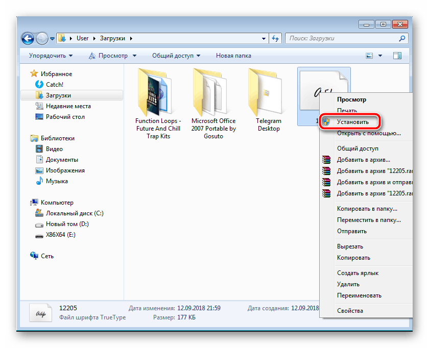 Метод 3. Установка стандартным способом через просмотрщик. Открываете в нем понравившийся вариант шрифта. Нажимаете «Установить». После завершения установки необходимо перезапустить приложение, в котором вы будете использовать набор, или сам компьютер.