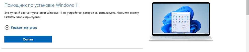 Второй способ можно назвать полуофициальным, поскольку при его применении можно использовать специальную утилиту «Помощник по установке Windows 11», размещенную на той же странице для скачивания новой ОС.