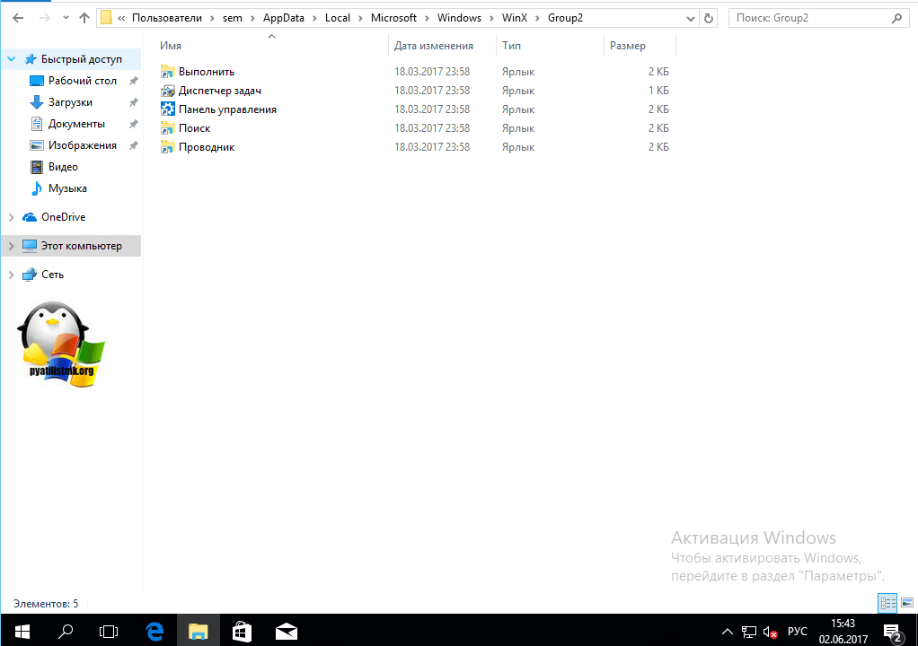 Для того, чтобы вернуть панель управления в меню Win+X потребуется скопировать ярлык панели управления (свой создать не получится, они не будут отображаться в меню) контекстного меню из предыдущей версии Windows 10 (до 1703) или 8.1, можете скачать у меня или зайти на более старой версии по пути