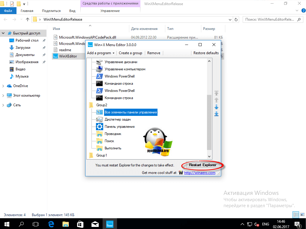 Теперь нужно перезапустить проводник Windows, для это нажмите кнопку Restart Explore.