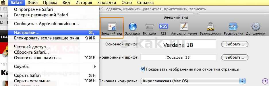 4. Как изменить шрифт или размер страницы в браузере Safari.