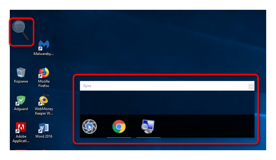 Она имитирует эффект линзы при наведении на определенную область экрана. Вызвать ее можно с помощью сочетания клавиш Win +.