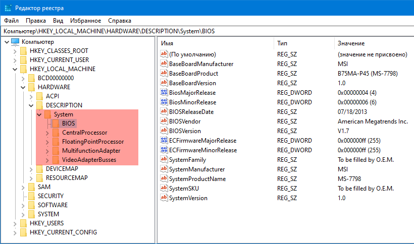 Посмотреть модель материнской платы в BIOS (БИОС)