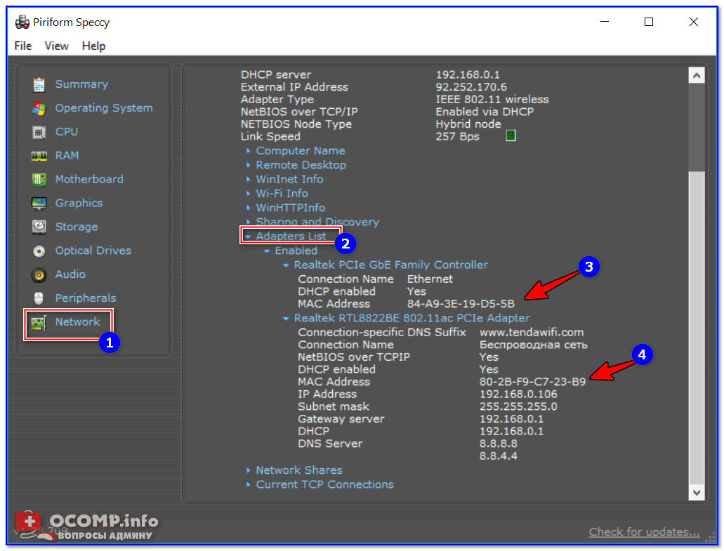 Также Speccy показывает и внешний адрес.