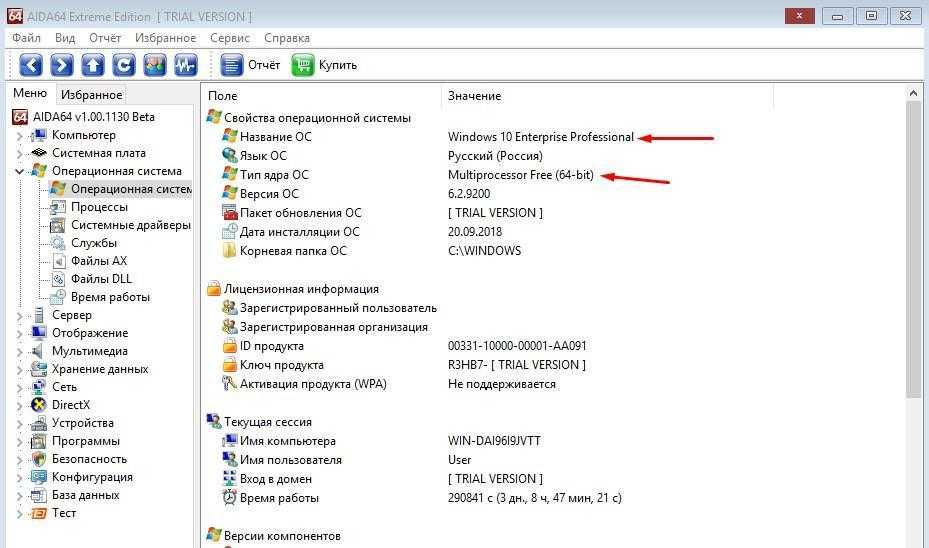 Существует большое множество программ от сторонних разработчиков, функционал которых позволяет определить установленную систему и собрать сведения о ней — например, AIDA64. Однако, все подобные программы лишь используют встроенные возможности ОС, о которых мы писали выше, так что целесообразность использования их для данных целей остается сомнительной.