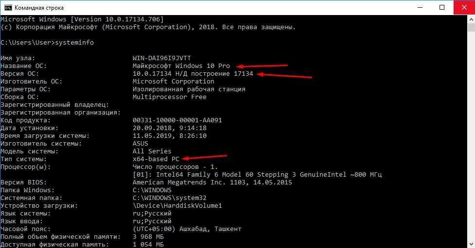 Командная строка — лучший друг как новичка-любителя, так и бородатого системного администратора. Узнать версию Windows из командной строки просто: открываем CMD и вводим команду , которая практически мгновенно соберет и предоставит вам детальную информацию о системе.