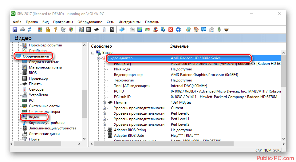- Напротив «Видеоадаптер» вы можете просмотреть его название. Ниже будут представлены основные характеристики.